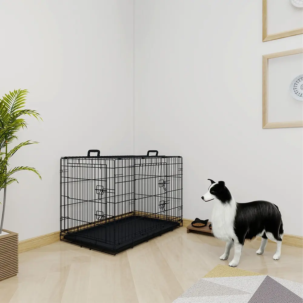 36 Inches Black Wire Dog Cage Double Lock Mechanism Two Doors Two Handles Double Bolt
