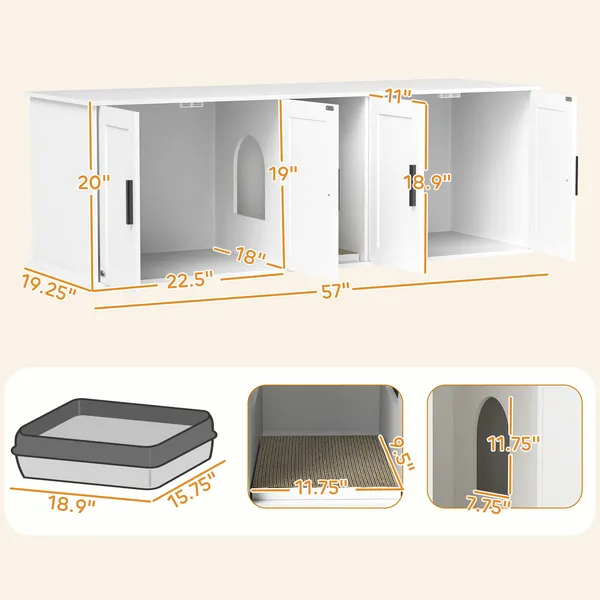 • - Private Entry: An outer cat door maintains privacy, minimizes odors, and keeps litter inside. Interior dual-side entries offer easy access, letting cats move freely and meet their exploring urge