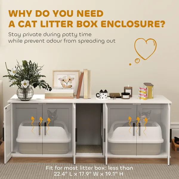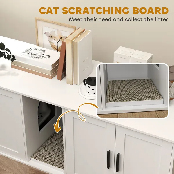 Home > Cat Litter Box Enclosure With Double Room, Scratching Mat For 2 Cats
