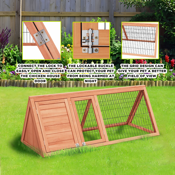 • [Unique Triangular Design] This A-frame wooden chicken coop features an outdoor activity cage and an enclosed indoor sleeping area, allowing pets to roam freely outdoors. The unique design saves space and is aesthetically pleasing.